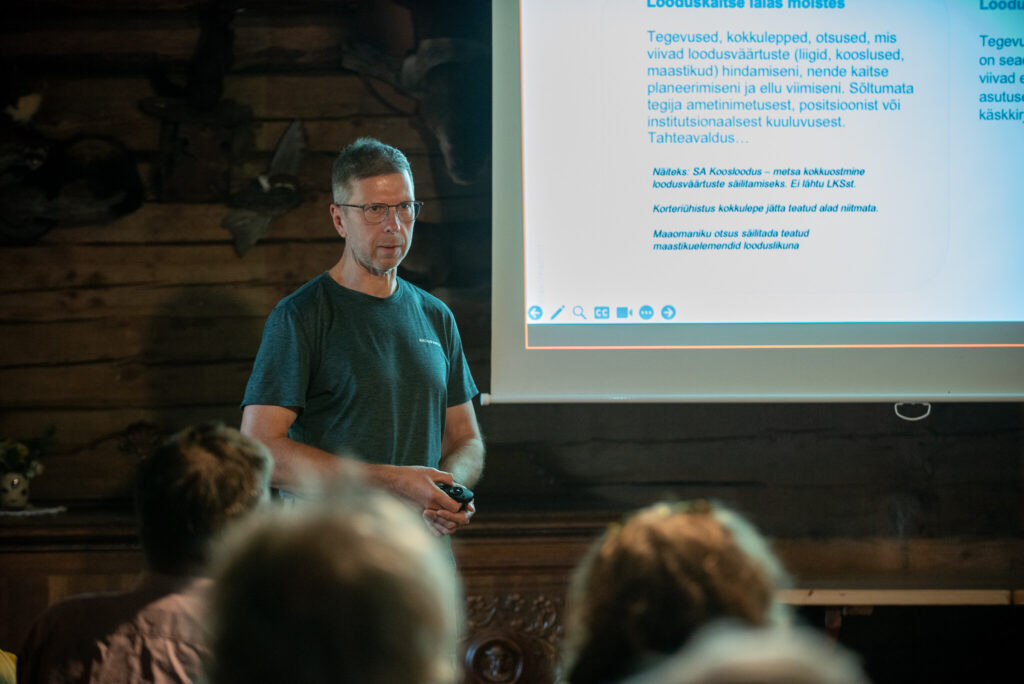 Edasi kõneles Veljo Runnel harrastusteaduse andmete kasutamisest looduskaitses. Tegemist on väga olulise teemaga, sest näiteks palju looduses liikuvad inimesed võivad märgata ja koguda infot kohtadest, kuhu liigiekspert kunagi sattuda ei pruugi. Arutlesime ka, kuidas juhuvaatlusi kogutakse ja kui usaldusväärsed need on, et neid saaks looduskaitseliste otsuste tegemisel kasutada.