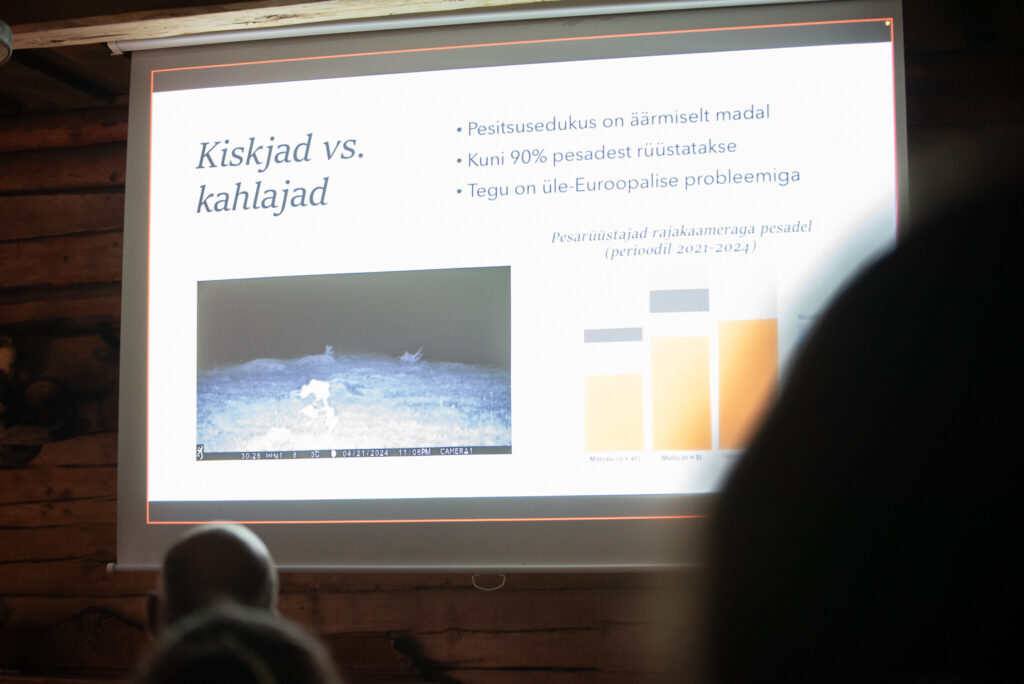 Seejärel tutvustas Amaranta Adojaan uuringut kiskjate ohjamise mõjust rannaniidul pesitsevatele kahlajatele – teemat, kus imetajad ja linnustik kohtuvad väga otseselt. Uuringust selgus, et rannaniitudel on pesitsevatele kahlajatele kõige problemaatilisemateks tegelasteks rebased, kelle arvukust selle projekti raames kohalikud jahimehed uuringualadel vähendanud on.